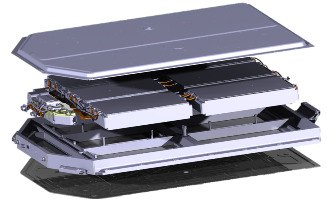 为确保托底安全,电池底部采用高强钢板进行底部防护,能够通过严苛底部球击测试。底部板喷涂有PVC涂层,有效防止石击磕碰损伤。同时,电池底护板由螺栓固定于箱体框架上,遇磕碰损坏后,可单独对底护板进行拆卸更换,节约维修成本。极狐电池采用“干湿分离”的热管理设计,电池箱体底板集成液冷板,即在箱体底板内形成冷却液管道,冷却液即使在极端情况下发生泄漏,也不会泄漏到模组高压区域,确保用电安全。